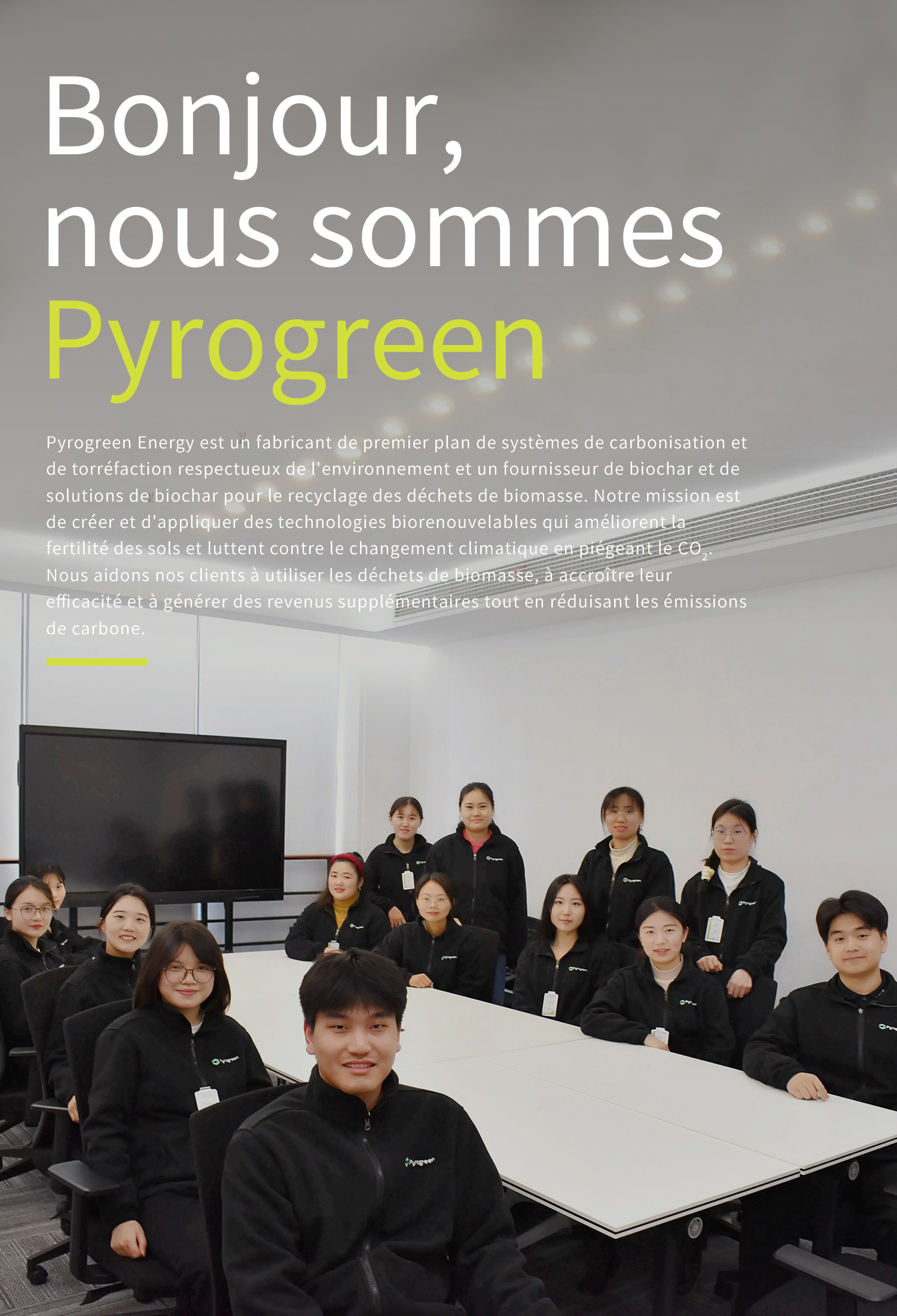 Pyrogreen s'engage pour un avenir énergétique sécurisé exempt d'opérations de décharge traditionnelles. Notre mission est de créer un réseau de centrales énergétiques vertes durables et à faible teneur en carbone qui produisent de l'électricité, de la chaleur et des carburants liquides en continu à diverses échelles , des unités de 20kW sur le site de génération de biomasse/déchets aux installations à l'échelle communautaire éliminant les décharges locales, et même au sein des grandes opérations de décharge régionales. Notre objectif ultime est l'indépendance énergétique, la création d'emplois locaux et un impact climatique positif.